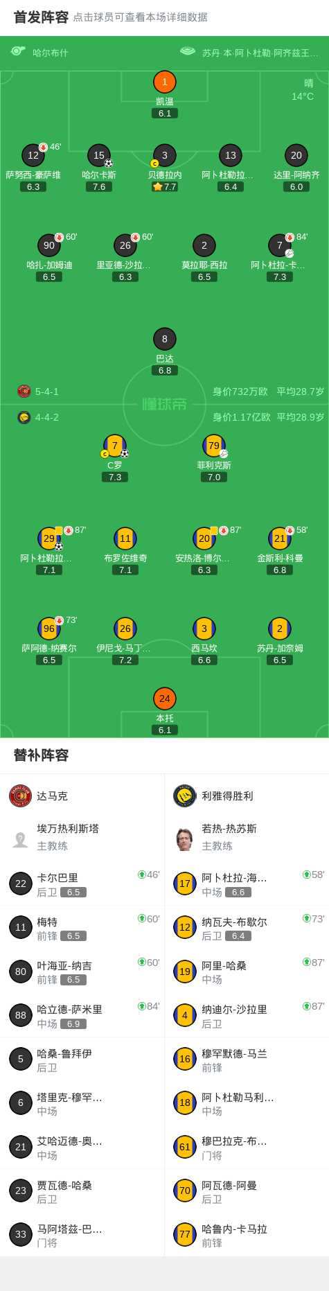 第68分钟,扳回一城,哈尔卡斯回头望月头槌破门,达马克1-2利雅得胜利